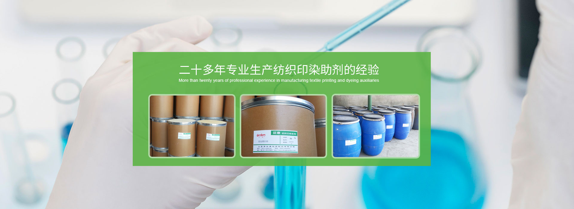 The company stresses scientific management and technological innovation development, and emphasizes talent introduction and cultivation, and takes cooperation and communication with many domestic colleges and scientific research institutes and dedicates to introduction and digestion of domestic and external advanced technology. Our main products include assist series (textile printing dyeing, pretreatment assist, waterproof oil repellent, and others)